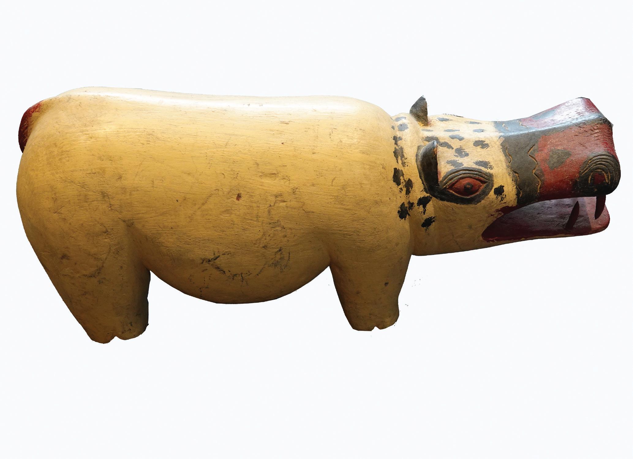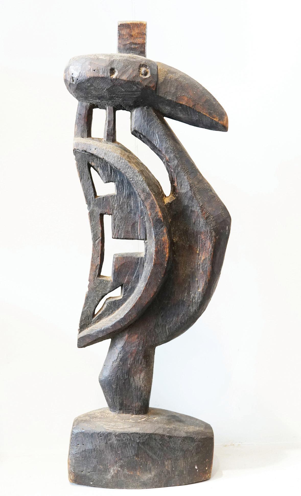 Alguns suportes de tambor de fenda (bombolom), com uso cerimonial, apresentam figuras zoomórficas ou antropomórficos esculpidas.