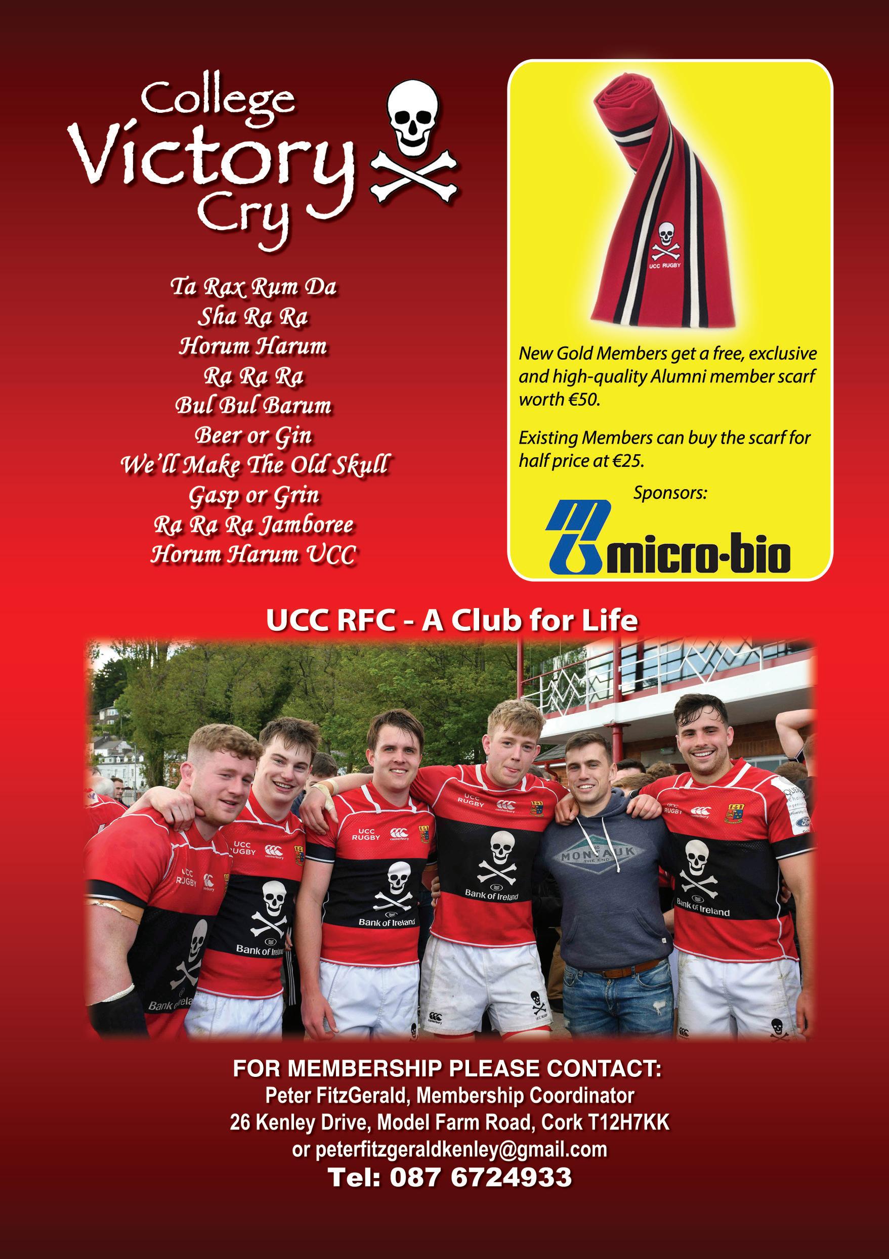 I am delighted and honoured to have been asked to serve as President of UCC RFC for the coming season. This season UCC RFC is celebrating its 150th Anniversary. UCC is the oldest rugby club in Munster and the third oldest in Ireland. Founded in 1872 when UCC was still known as Queen’s College Cork, UCC Rugby was the first sports club in college, and has defined the look of sports in UCC through its iconic Skull & Crossbones emblem.