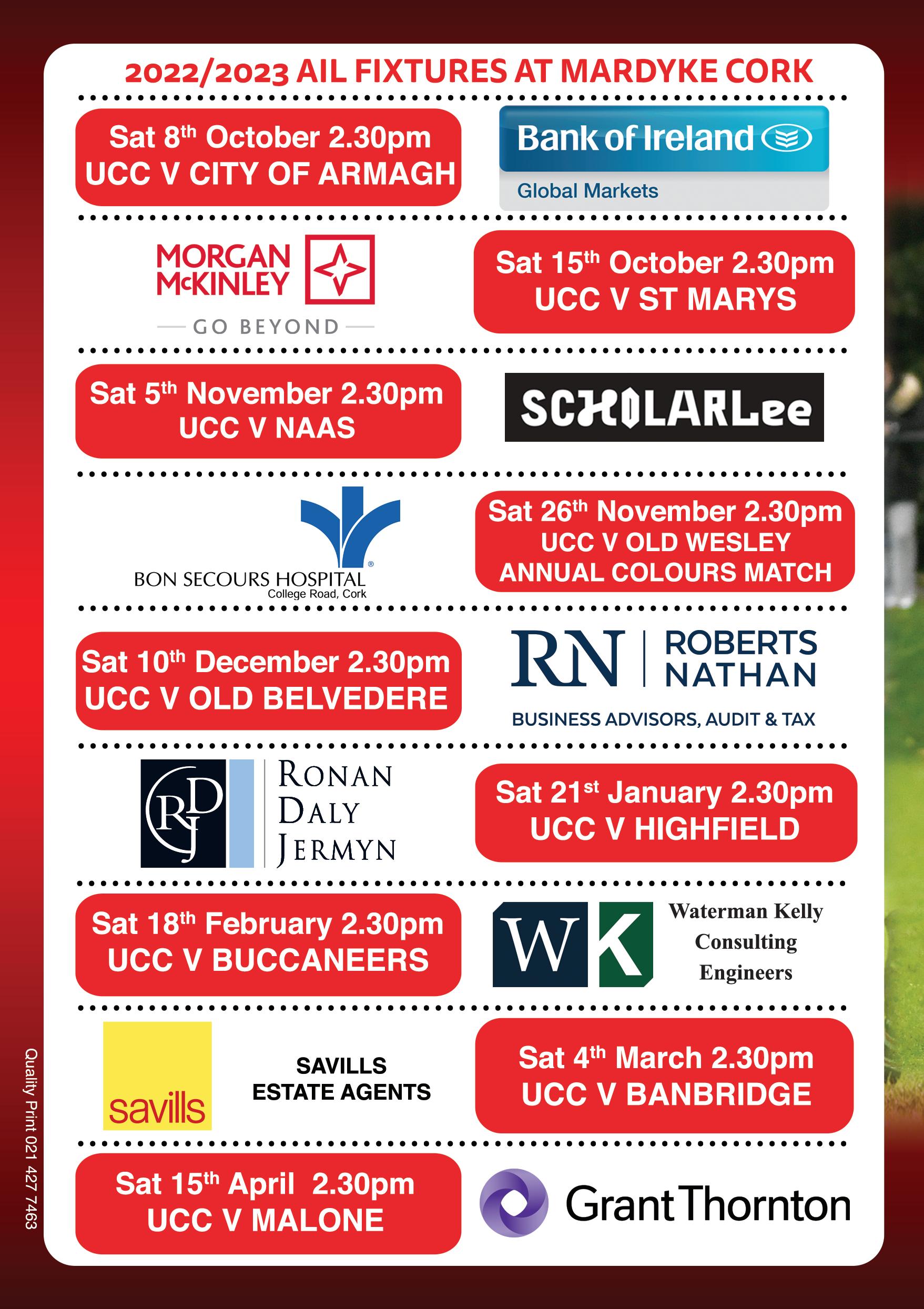 Today we welcome City of Armagh RFC to the Mardyke for our 1st home match of the season. I would like to wish them and their President, Tom Galbraith well. Best wishes also to our new coaching team, which is headed up by Michael Bradley. Michael will be assisted for the 1st team by Ken O’ Connell (forwards coach), Scott Deasy (backs coach) and Paul McCarthy (scrum coach),