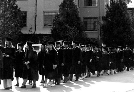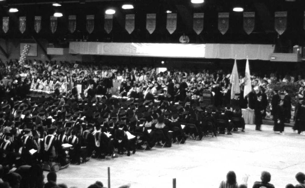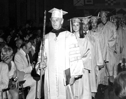 Graduates wore gold regalia from 1976 (centennial year of the University) to 1985.