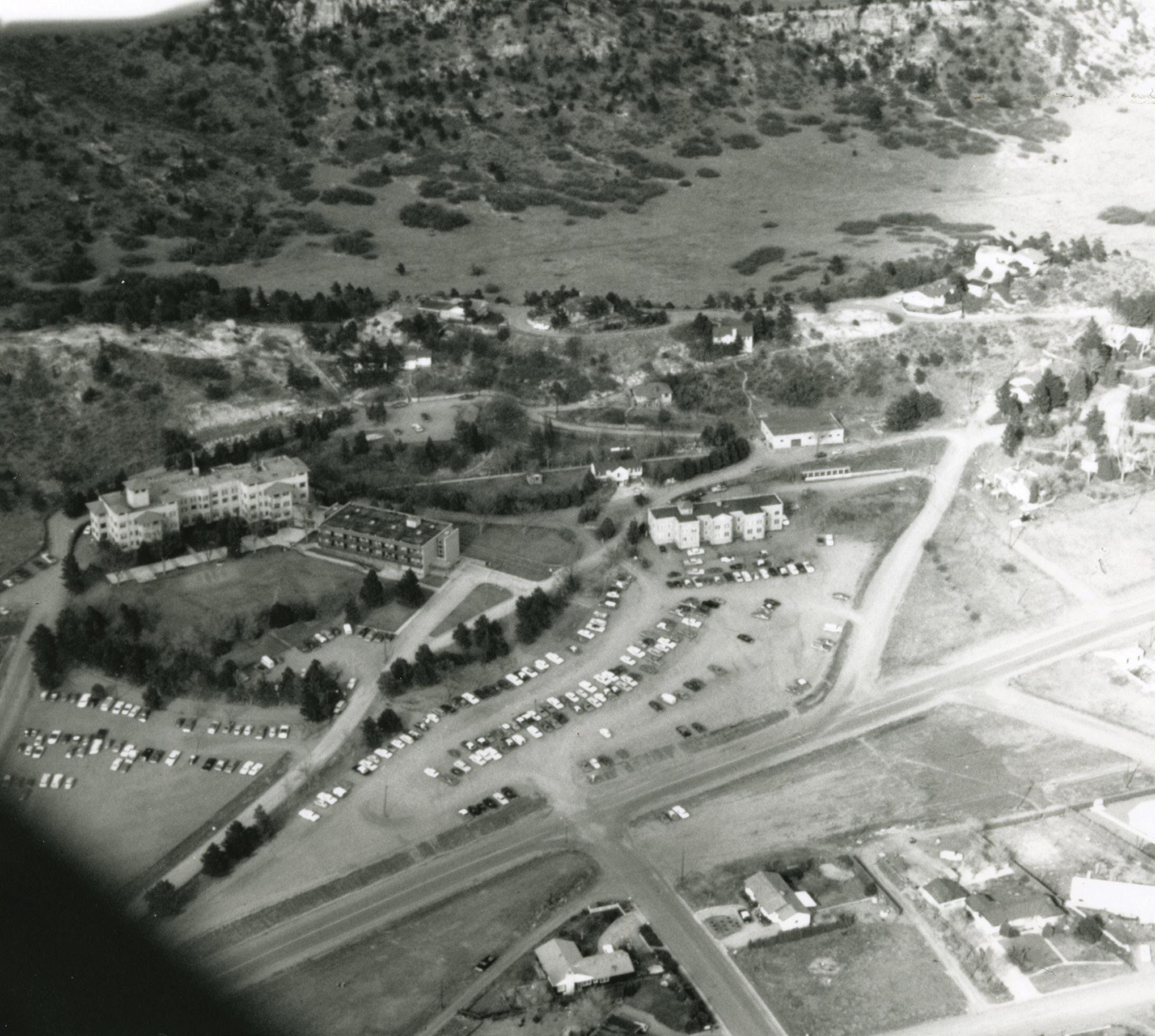 Aerial View of UCCS Campus, circa 1970. Photographer: Donald Van Horn Courtesy of UCCS Archives, Kraemer Family Library
