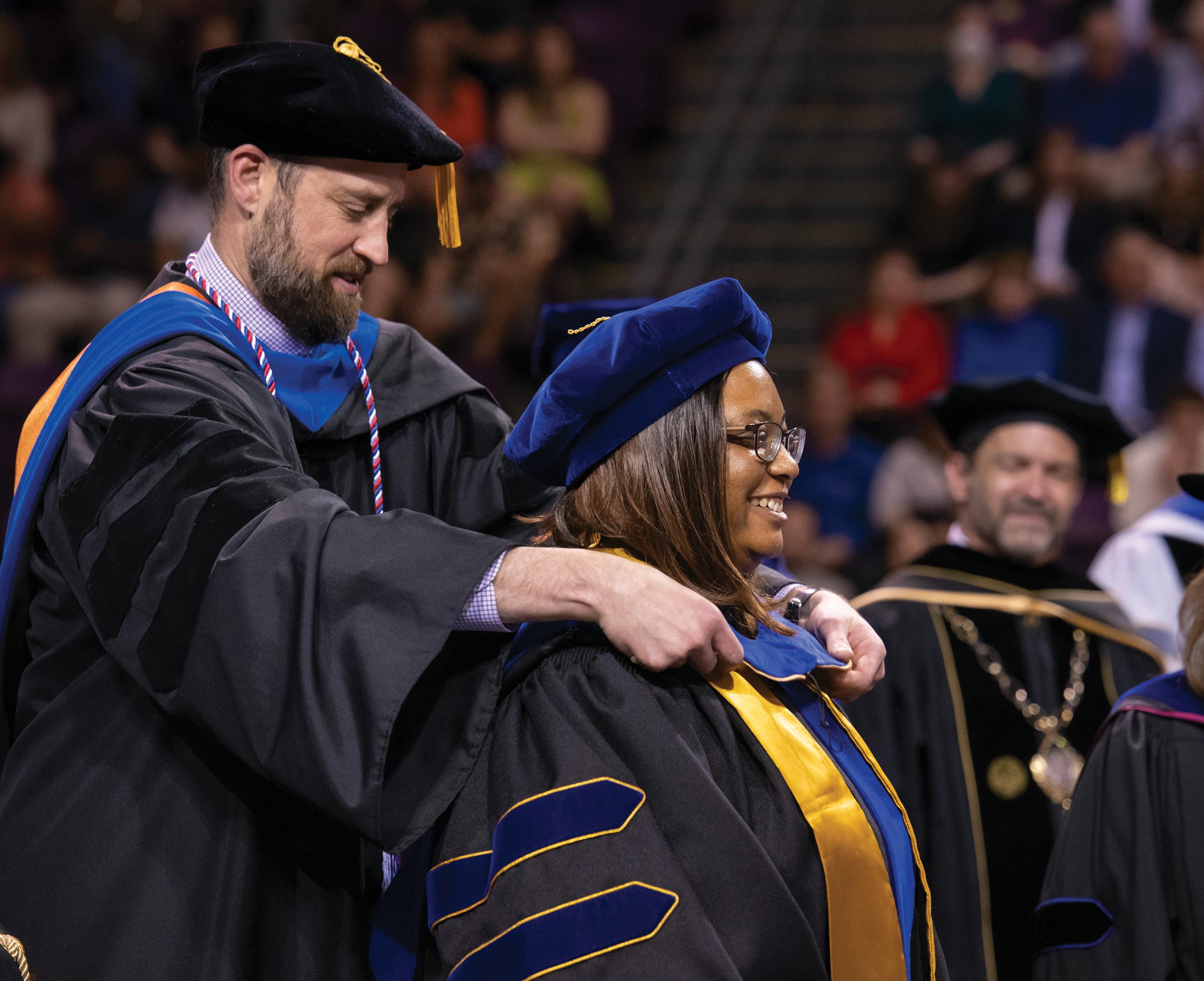 Today, the entire university community comes together in celebration of the achievements of the class of 2022, those who earned bachelor’s, master’s and doctoral degrees. We are pleased that family and friends who played an important role in your journey have joined us in celebration. Their physical presence today is as meaningful as has been their emotional and financial support to get to this milestone achievement.