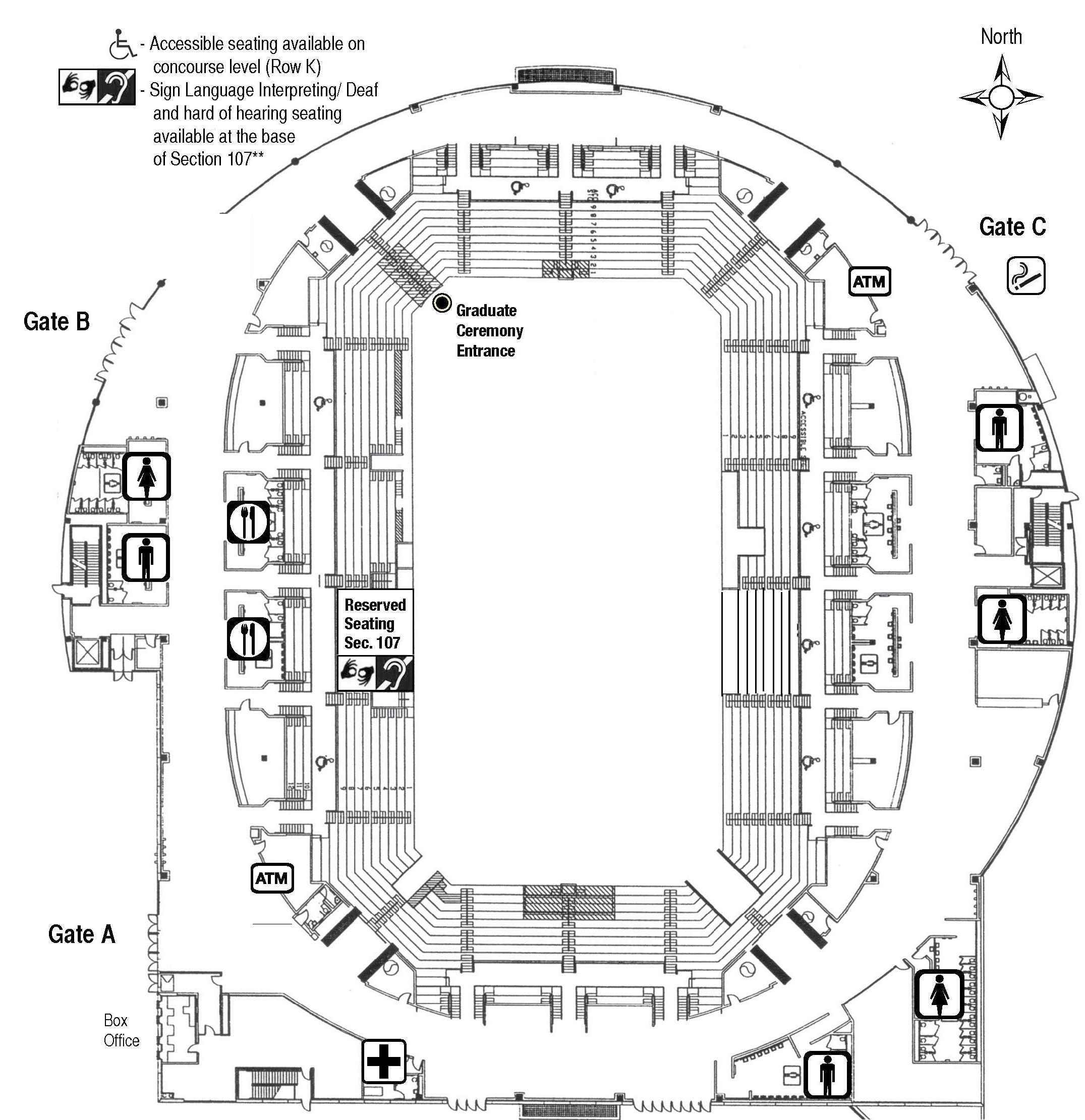 - Accessible seating available on concourse level (Row K)