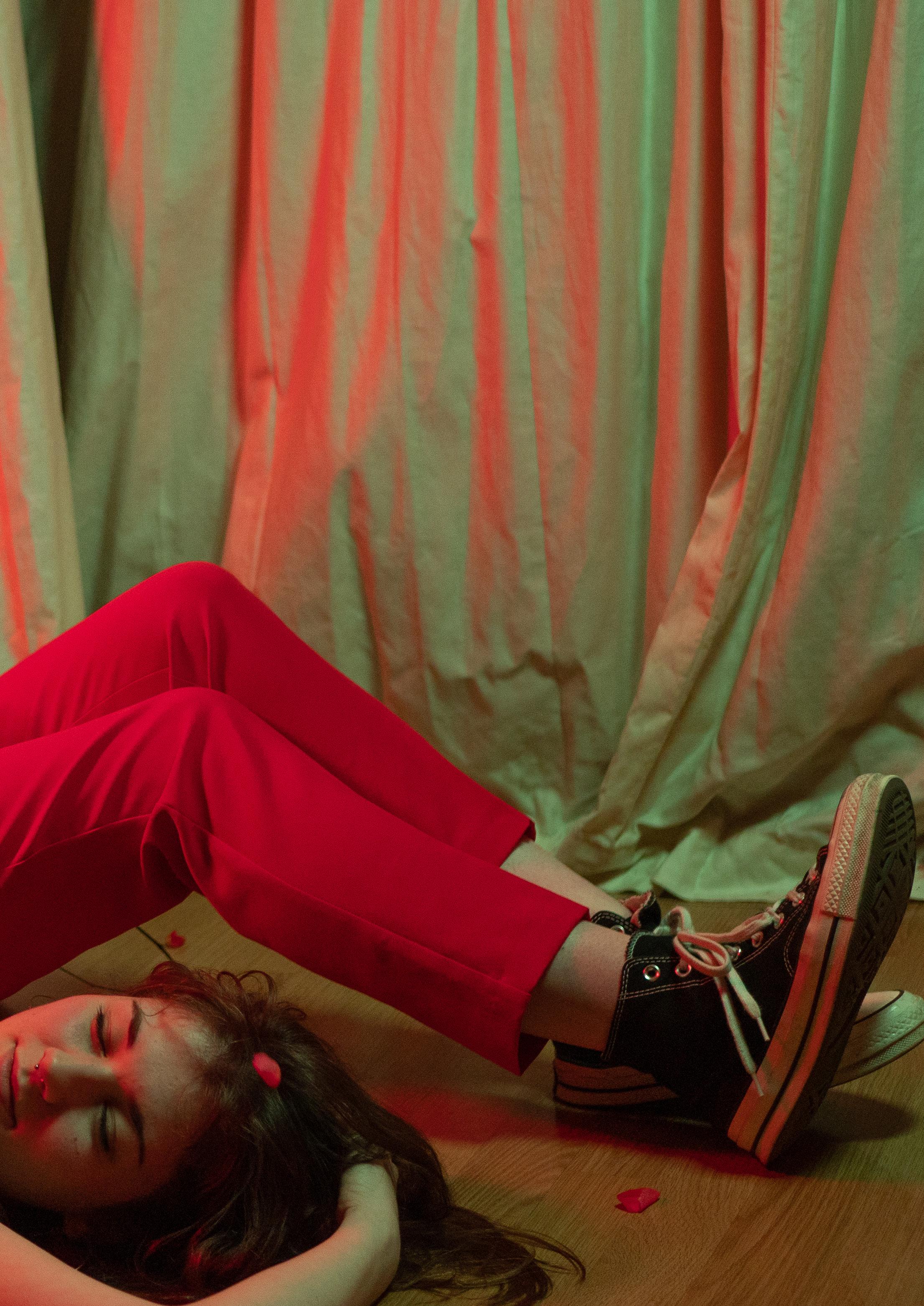 Gartland and CMAT (who she has been styling for for years). Working with singers consists in balancing showing her own style and skills with the image the artists want to present of themselves. “With CMAT, she has a very distinct style herself. She’s quite western, and I suppose that fits into my pieces, because my corsets and drapeful dresses are quite western. I made her a capsule wardrobe, six looks over the course of maybe six months. When she went on tour, she just mixed and matched everything as she went. A lot of the pieces were layerable or adjustable, so it's kind of perfect if you're on tour, because you don't have to bring a big suitcase with you. She wears them in her everyday life as well.” Ríon and CMAT worked closely together on that capsule, having regular fittings and throwing ideas at each other, “everything that I give to her she's like “yeah, perfect”. She's so easy going about it.” When collaborating with Orla Gartland the process was a bit different, as the singer contacted Ríon two weeks before her concerts at the Olympia asking if there was anything pre-made she could wear to the show. “I came to the green room of the Olympia the day before her show with just a few pieces, we put a few outfits together and thankfully, everything fit perfectly.” The process is different for every collaboration.