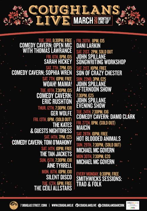 Whether he is drawing from folk, ballad tradition or something more playful and personal, there is a deceptive ease to what he does. In a room like Coughlan’s, that closeness matters. These should be lovely shows: intimate, generous, and full of songs that stay with you.