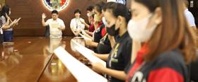 Mayor Malapitan officiated the pledge of the new editorial board members, witnessed by the university OIC Marilyn T. De Jesus, DPA, TNC Training and Development Adviser Carissa Erika Camua-Policarpio, Technical Adviser Dr. Bernadette B. Enriquez, and Asst. Technical Adviser Prof. Catlleya C. Yee.