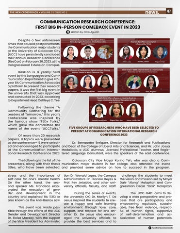 In this first-ever magazine of The New Crossroads since the pandemic entitled “Revival”, it provides different stories on how UCCians reclaim their glory by engaging in activities and competitions within, and outside the university.