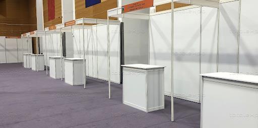 Each Exhibitor will be provided with a shell stand, 2 chairs, and each stand will have a high countertop. The dimensions of the stands are 2.5m x 1.5m with a height of 2.5m.