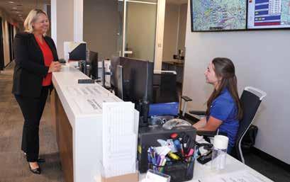 Melissa Cooper checks in with dispatcher Serena Garcia on a visit to Skyhaven Aviation Center.