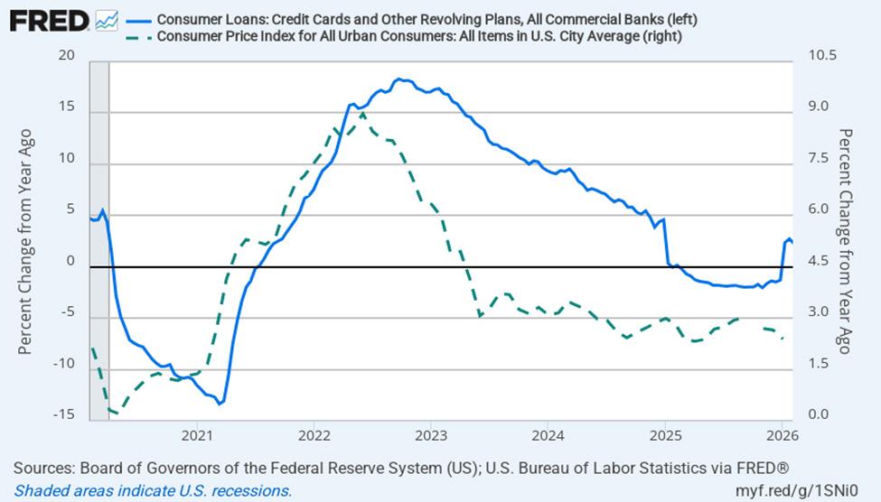 The shortfalls in consumers’ budgets were patched by savings from the COVID lockdown era and, when those ran out, by using credit card debt. However, these patches to consumers’