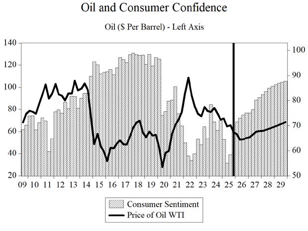 The eventual end of trade-related uncertainty and general economy friendlier policies from D.C. should help carry the economic expansion through the end of our forecast horizon — albeit with slower economic growth as consumers will be tapping the brakes on spending and working at repairing their inflation-damaged balance sheets.