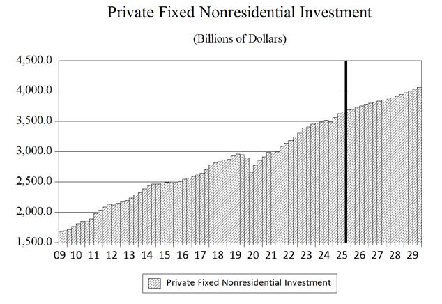 In 2020, non-residential investment spending contracted by 4.6%, then rebounded to 6.2% growth in 2021 and 6.5% growth in 2022; then jumped to 7.3% in 2023 before sliding to 2.9% in 2024. During 2026-2029, we expect average growth in non-residential investment spending to be just 2.5%, decelerating from 2.9% in 2026 to 2.1% in 2028, before rebounding to 2.8% in 2029.