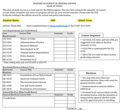 • MSCJ students must earn a B (3.0) or better in all CJ core classes. B- grades or below will require a re-take
