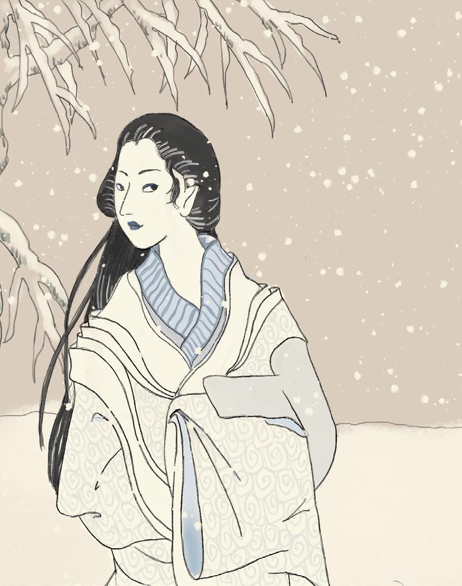 The old legends surrounding yuki-onna, the snow woman, are predominantly tales of sorrow. These narratives originated from the experiences of individuals who lived somber lives, including childless elderly couples and solitary men dwelling in mountainous villages. They would hear the haunting sound of a blizzard tapping on their shuttered