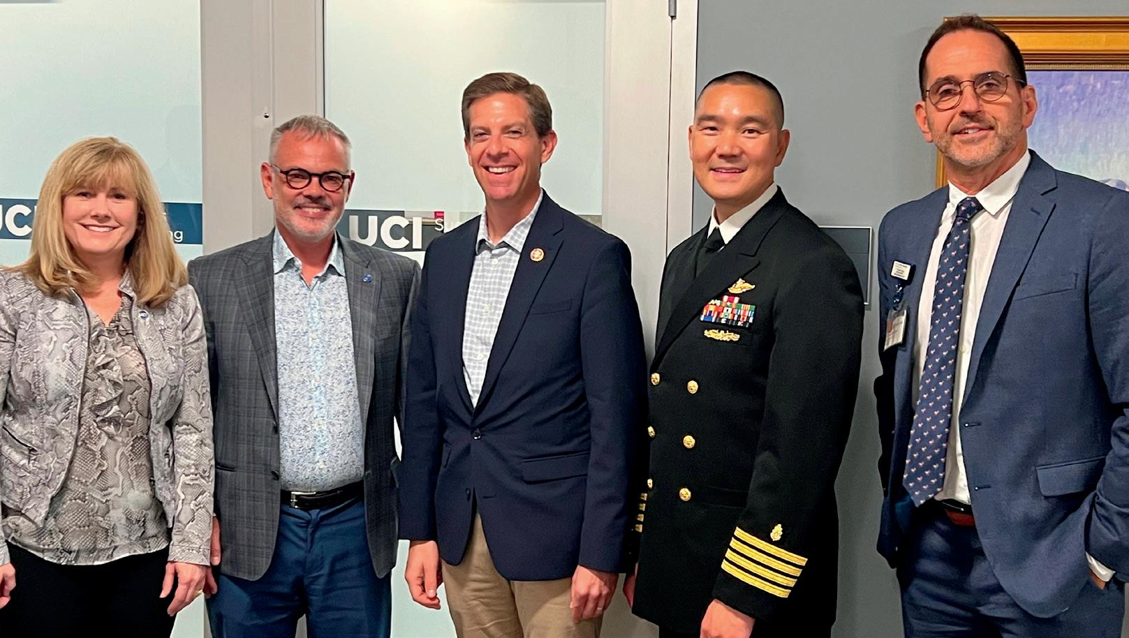In pale blue blazer: Assembly member Diane Dixon (California 72nd Assembly District) at the simulation center.