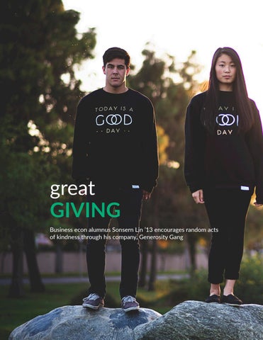 great GIVING Business econ alumnus Sonsern Lin ’13 encourages random acts of kindness through his company, Generosity Gang