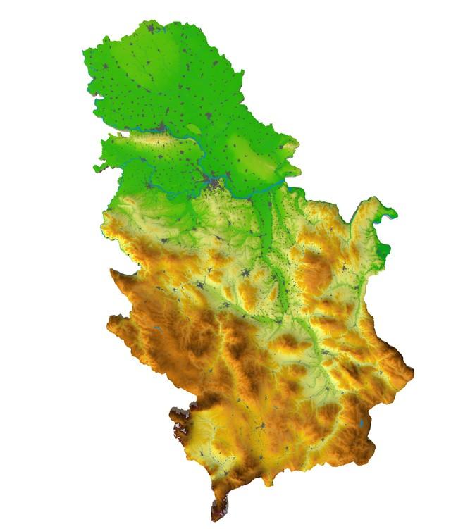 РЕЉЕФ СРБИЈЕ Рељеф Србије сачињавају три географске целине. То су Панонска низија, потом брдовити предели с нижим планинама и низијама, и планинско – котлинска подручја. У Војводини су равнице са речним токовима, као и два планинска узвишења, Фрушка Гора и Вршачке планине. Брдовити предели са нижим планинама и низијама заузимају простор јужно од Саве и Дунава. Надморска висина на овом подручју варира од 500 до 1 000 метара. Овакав рељеф обухвата око две трећине територије Србије. Око десетину територије Србије чине подручја са надморским висинама од преко 1 000 метара. Реч је о масивима смештеним јужно од река Западна Морава и Нишава.