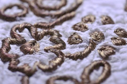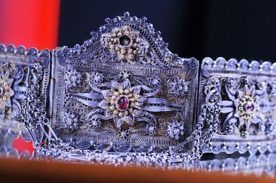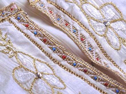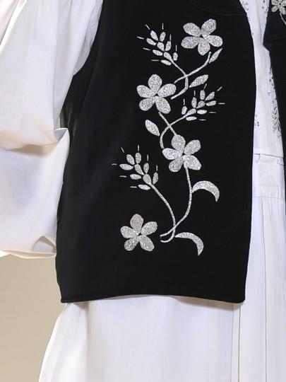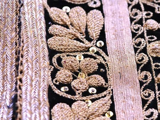 ЦЕТИЊЕ УРАДИО: УРОШ ЂУРОВИЋ Kомплетна црногорска свечана ношња била је производ занатске израде, бела кошуља од танког свиленог ћенар платна, украшена финим ошвицама дуж отвора на грудима и око врата била је производ домаће радиности. Карактеристичан црногорски вез ошвица који чини линију беле женске кошуље отменом није извођен директно на платну кошуље већ на засебним комадима платна који су се накнадно пришивали на њу. Ситно изведен везени мотив је геометријског или флоралног карактера, а рађен бодом полукрстића или крстића. Златне ошвице красиле су невестинске кошуље од танког свиленог платна протканог срмом и као такве одувек служиле као добродошао дар и уздарје.