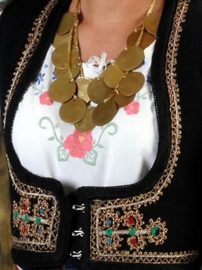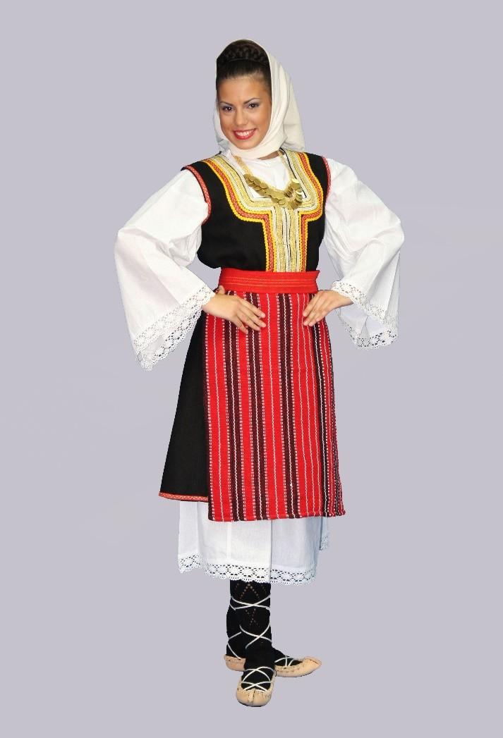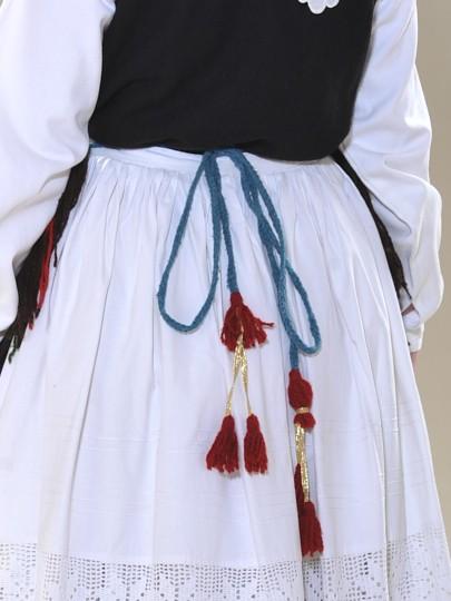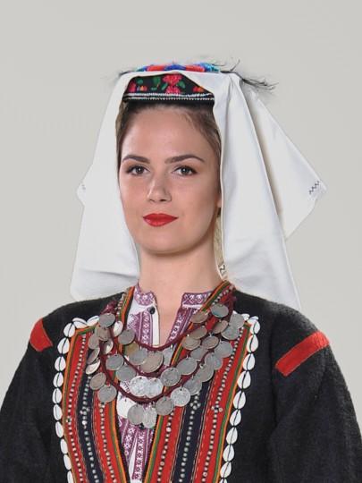 Женска народна ношња састоји се од беле ткане кошуље везене и са чипком, црне или тегет сукње,