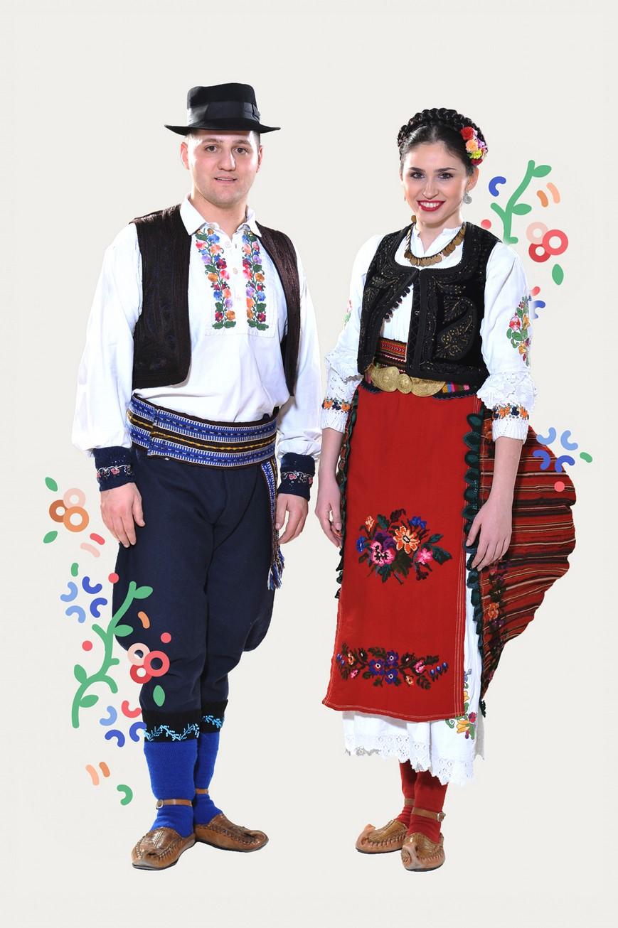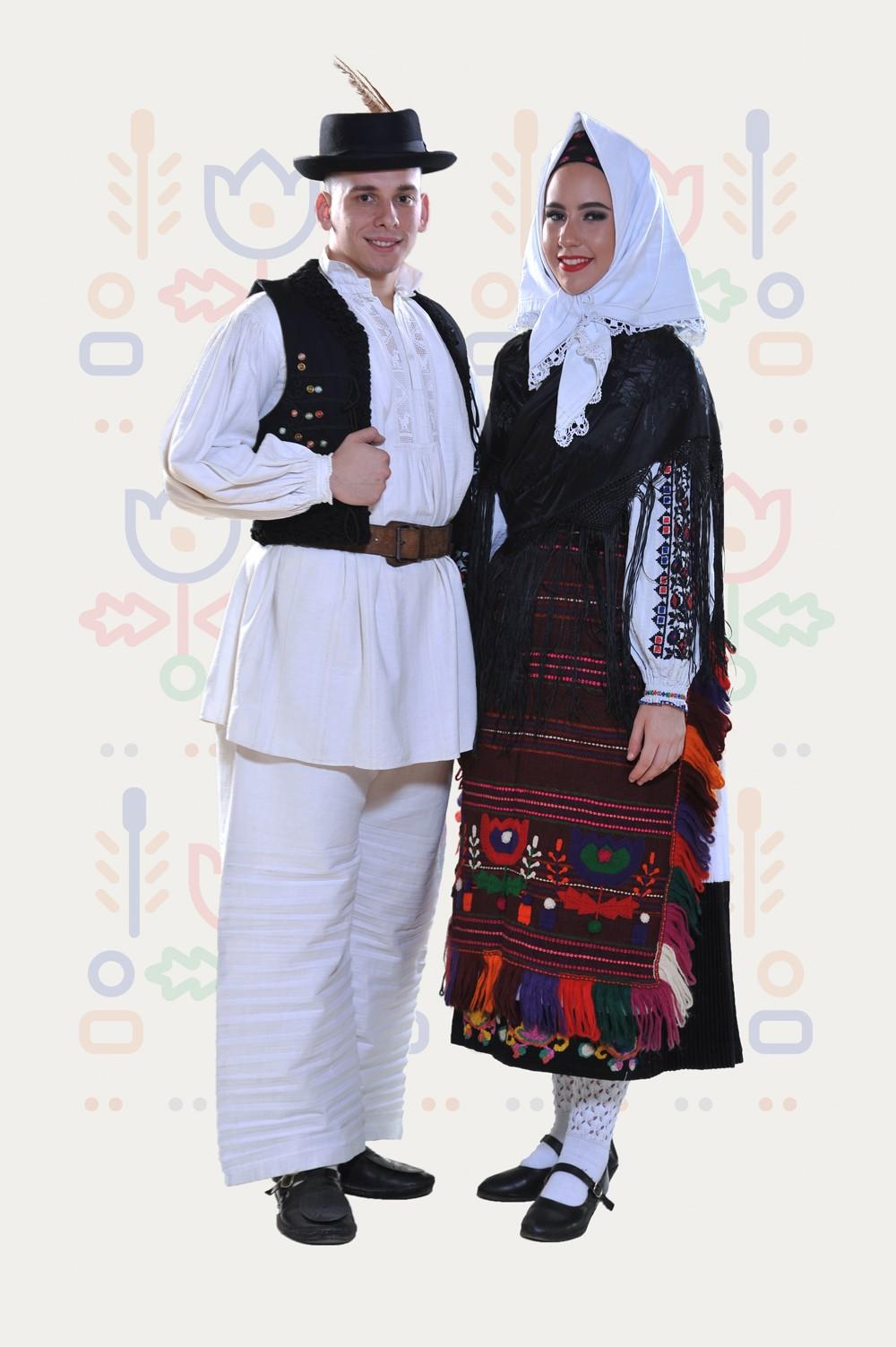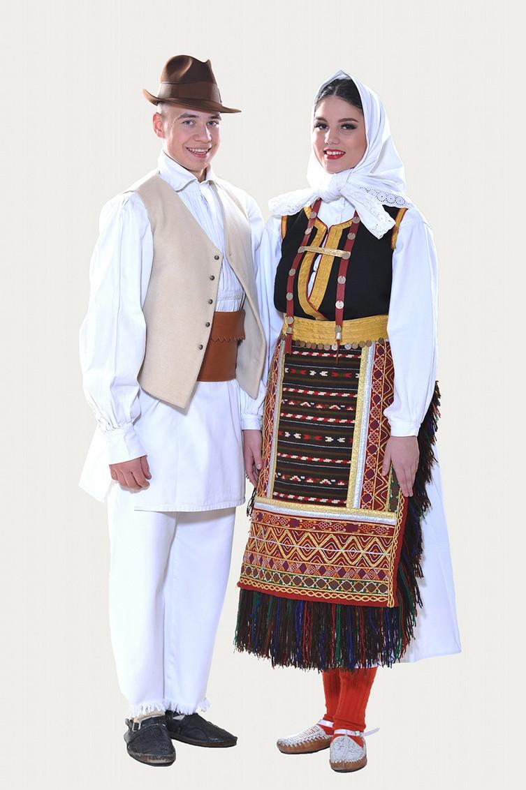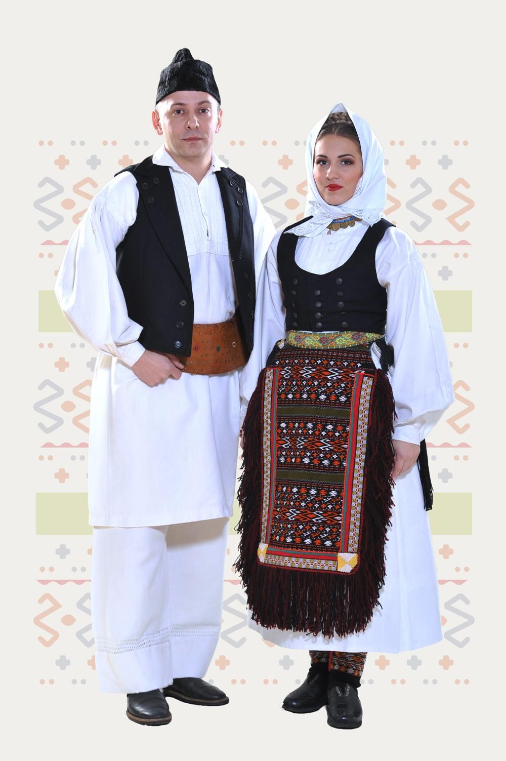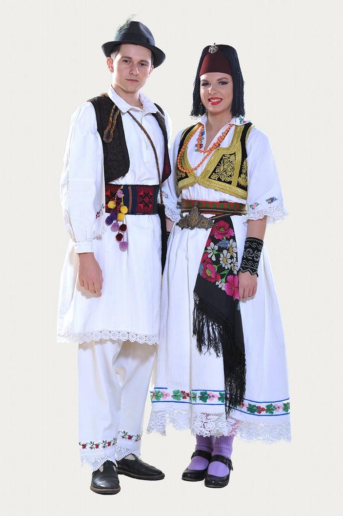УРАДИЛА: ЈАНА ПАНТЕЛИЋ КОРДУН ● Жене су имале слојевите сукње и кошиље испод прслука и све је било шарено и пуно детаља по чему је ова ношња препознатљива. ● Мушка ношња је била препознатљива по кожном појасу у који се стављао пиштољ или нож. Такоће са доста детаља.