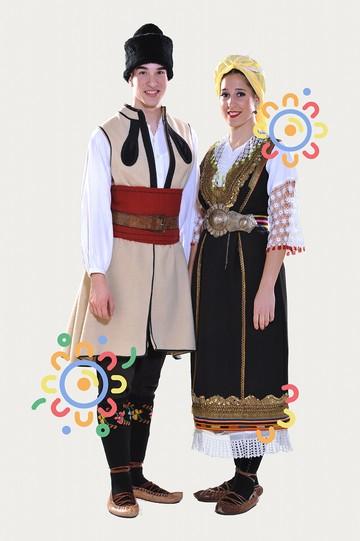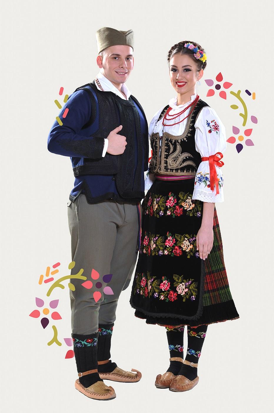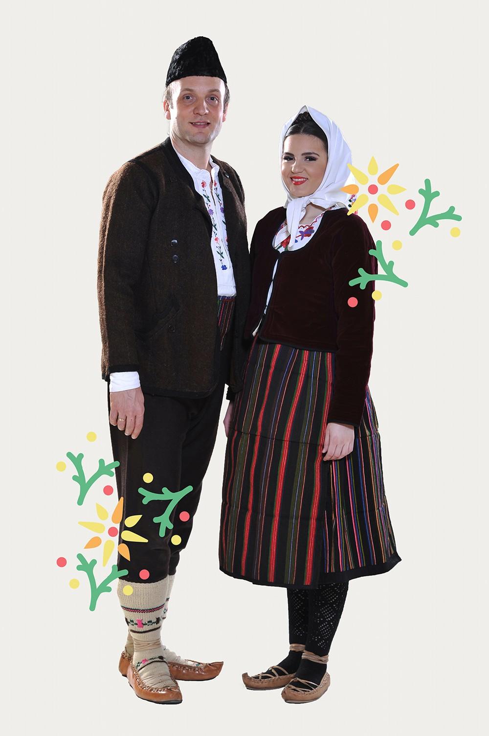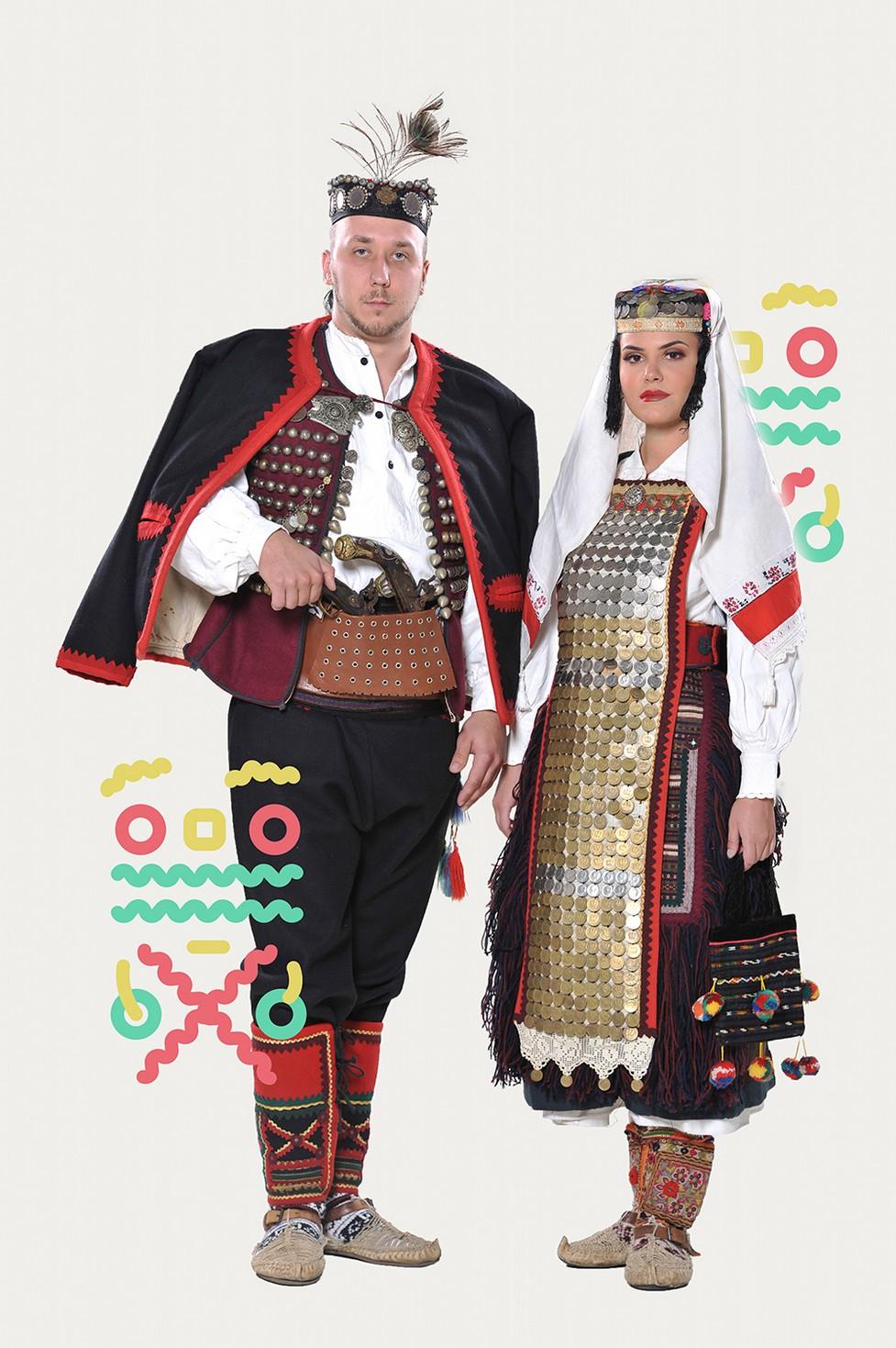 УРАДИЛА: ЈАНА ПАНТЕЛИЋ КОРДУН ● Жене су имале слојевите сукње и кошиље испод прслука и све је било шарено и пуно детаља по чему је ова ношња препознатљива. ● Мушка ношња је била препознатљива по кожном појасу у који се стављао пиштољ или нож. Такоће са доста детаља.