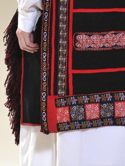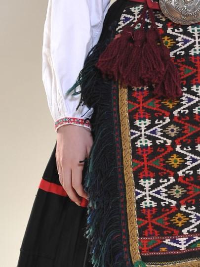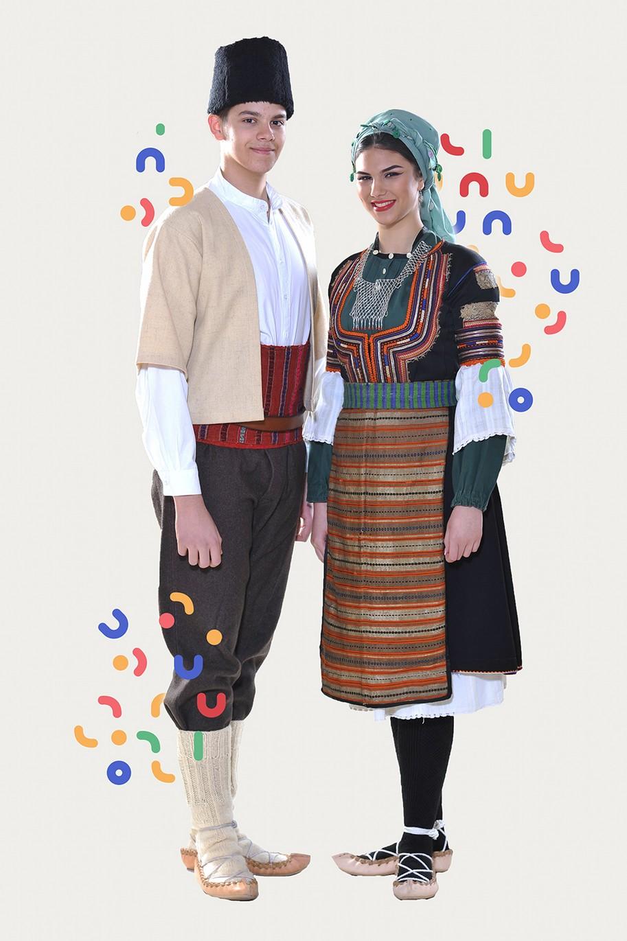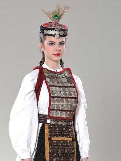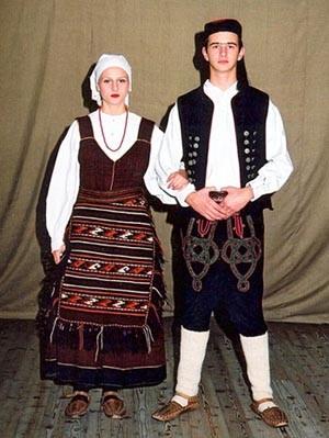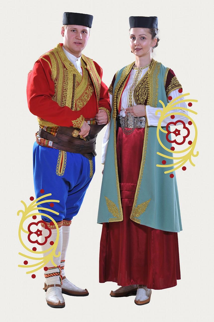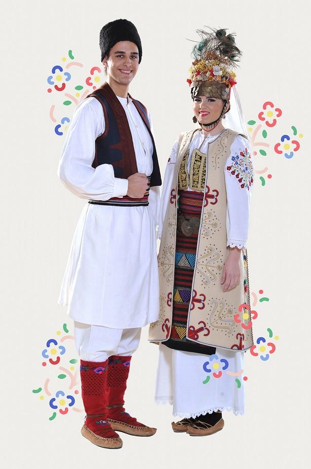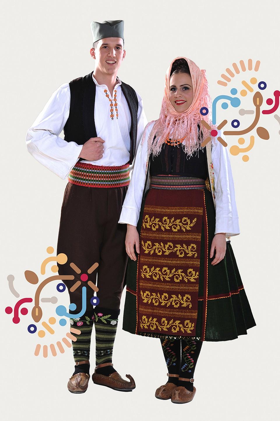 УРАДИЛА: ЈАНА ПАНТЕЛИЋ КОРДУН ● Жене су имале слојевите сукње и кошиље испод прслука и све је било шарено и пуно детаља по чему је ова ношња препознатљива. ● Мушка ношња је била препознатљива по кожном појасу у који се стављао пиштољ или нож. Такоће са доста детаља.