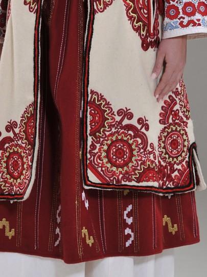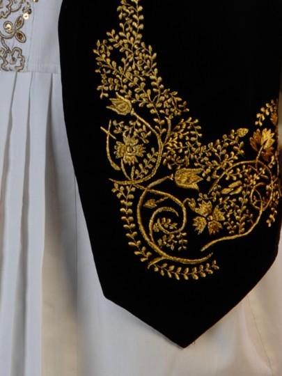 БОСИЛЕГРАД УРАДИЛА: ИРИНА ЂУРЂЕВИЋ Од Сурдулице до Босилеграда, носи се женска хаљина саја. Најстарије саје су рађене од црног ваљаног сукна које се називало бало и израђивале су га саме жене. Напред су отворене целом дужином, рукава тесних и кратких, до близу лаката, тек колико мишиће да покрију. Саја је на грудима исечена као шумадијски јелек и део око изреза украшен је поширим домаћим ширитом, разнобојним вуненим гајтанима и срменим жутим гајтаном сурмом. Ивицом груди је набран гајтан на петљице, подкита, док се везени део груди зове ошвице. На десној страни саје на појасу налази се џеп, а са стране у дну су мулије, два дубока засека. Рамена и нарочито рукави око лакта су богато украшени..