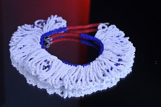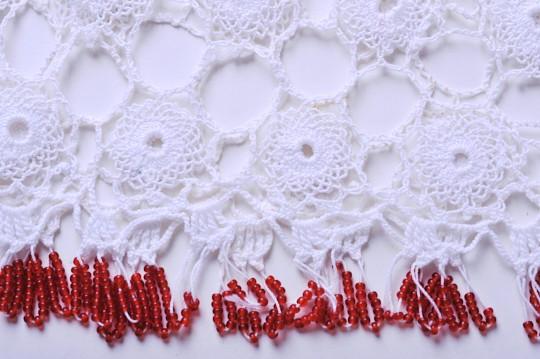 ОКОЛИНА БЕОГРАДА УРАДИЛА: САНДРА ДРАГИЋЕВИЋ Конђа са убрадачем била је основно оглавље удатих жена у многим крајевима Србије. У околине Београда, конђа се састојала од дрвеног, ређе металног, обруча покривеног крпом, и убрадача велике куповне мараме са ресама која се спуштала низ леђа. Конђу су правиле саме жене, а као њен саставни део носио се и накит од новца, затим разне украсне игле - уковице или трепетљике. Конђа се кумошем одн. подбрадником (украшеним везом срменом нити, перлама или сребрним новцем) везивала испод браде. Наниз је намењен искључиво за невесту и тим именом се назива све што она од накита има на глави, а састоји се од: подбрадника, репаче, крпице и уко сника при чему је сваки од његових делова богато поткићен сребрним новчићима.