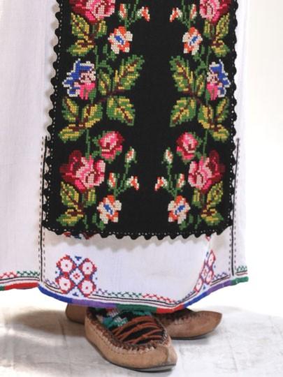 ПАКРАЦ, ЗАПАДНА СЛАВОНИЈА Скутима је називана посебна врста сукње ношене у овом крају. Израђивана је од домаћег тканог платна сложеног у ситне наборе. Свечани скути кројени су од 6-7 пола платна који су сви били фалтани осим једне поле која се називала предњица и преко које је