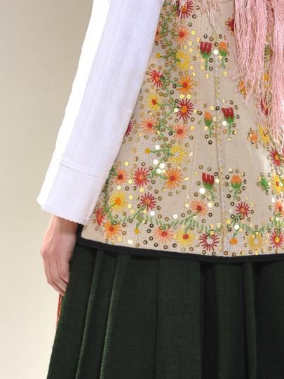 ношена прегача, вертун. Да би се фалте боље сложиле и да би биле трајније жене су користиле шећерну воду, а на леђном делу скута, у струку, нашивале су обашву.На доњем рубу предње равне поле пришивана