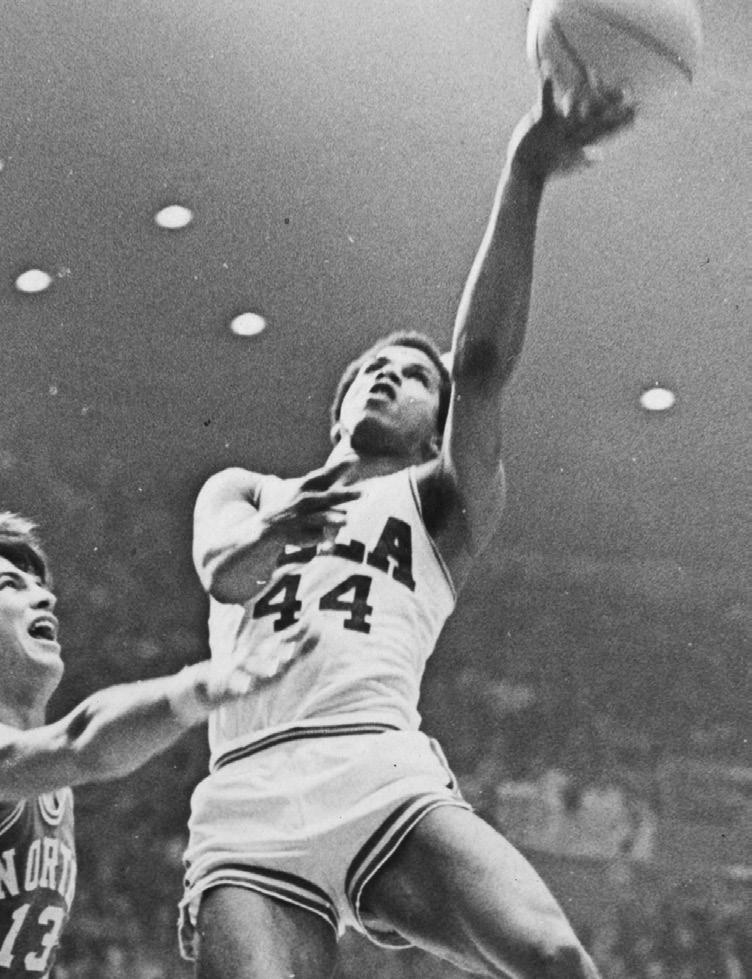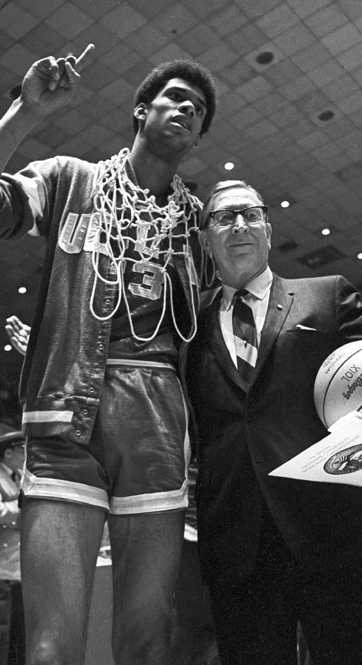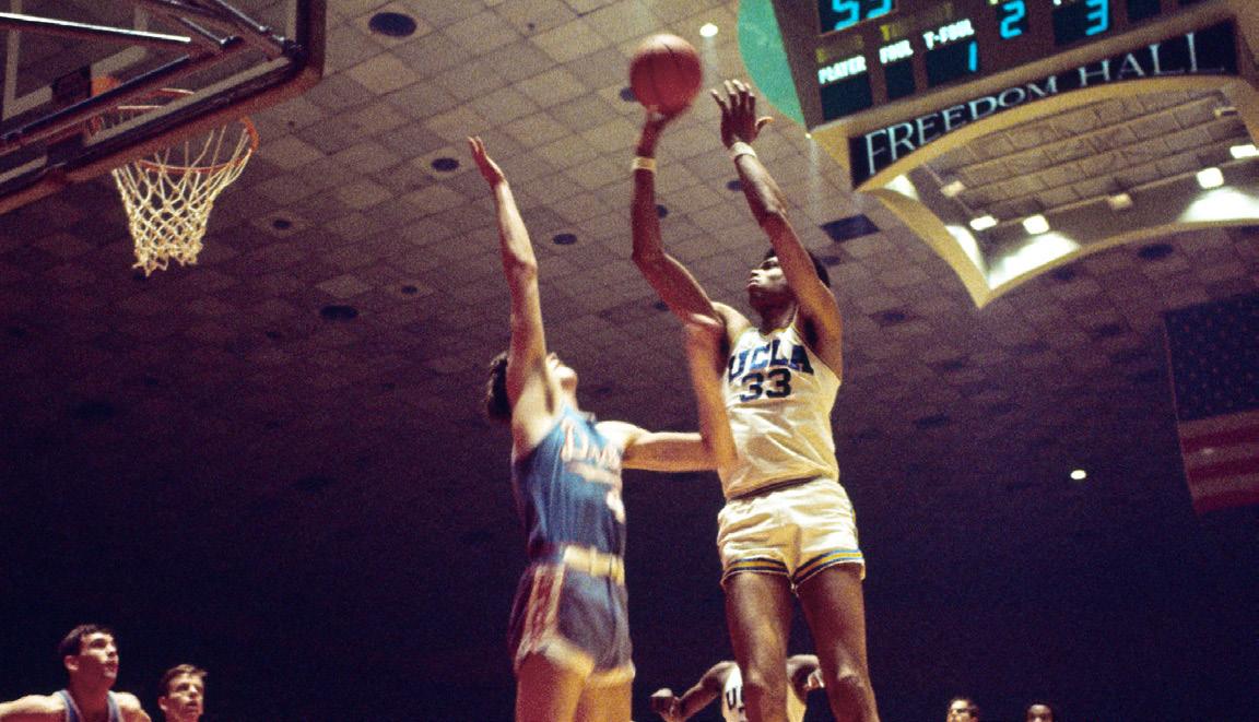 Alcindor excelled on the varsity team under Coach Wooden from 1967-69, helping UCLA win NCAA Championships all three seasons. His jersey number (33) was retired in Pauley Pavilion during a halftime ceremony on Feb. 3, 1990. During his three varsity seasons, he helped UCLA compile an 88-2 overall record. He earned consensus All-America honors three times and became the only player to ever be selected “Most Outstanding Player” of the Final Four three times. He was a three-time college player of the year and ranks first in career scoring average at UCLA (26.4 points per game).