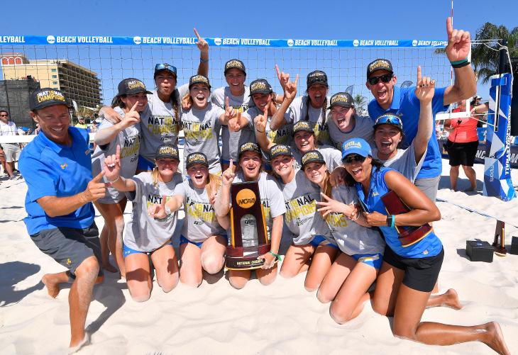 GULFSHORES,Ala.–Thesecond-seededUCLAbeach volleyballteamwonitssecond-consecutiveNCAAtitle onSundayafternoon(May5),takingdowntop-seeded USC3-0atGulfShoresPublicBeach.