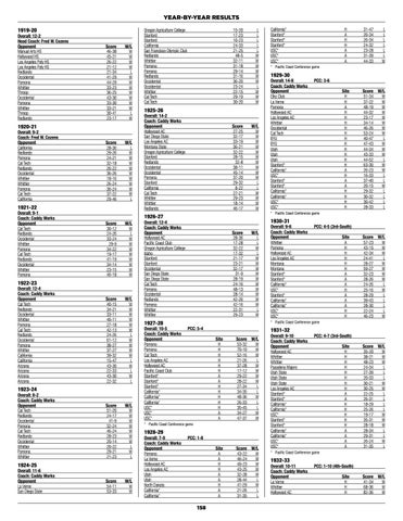 Overall: 9-6 Coach: Caddy Works Opponent Whittier Pomona Hollywood AC Los Angeles AC Montana Montana Stanford* Stanford* California* USC* Stanford* California* California* USC* USC*