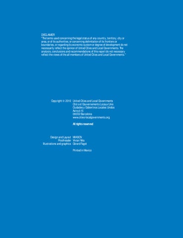 DISCLAIMER "The terms used concerning the legal status of any country, territory, city or area, or of its authorities, or concerning delimitation of its frontiers or boundaries, or regarding its economic system or degree of development do not necessarily reflect the opinion of United Cities and Local Governments. The analysis, conclusions and recommendations of this report do not necessary reflect the views of the all members of United Cities and Local Governments."