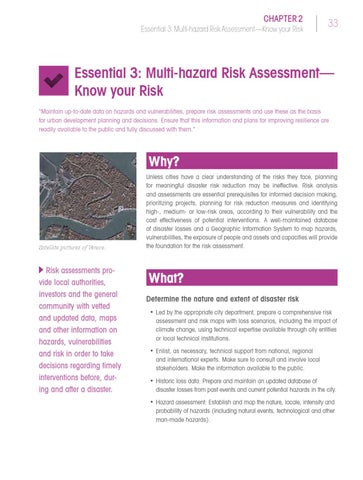 Essential 3: Multi-hazard Risk Assessment— Know your Risk “Maintain up-to-date data on hazards and vulnerabilities, prepare risk assessments and use these as the basis for urban development planning and decisions. Ensure that this information and plans for improving resilience are readily available to the public and fully discussed with them.”