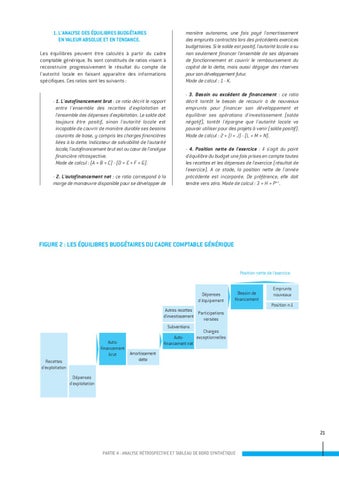 1. L'ANALYSE DES ÉQUILIBRES BUDGÉTAIRES EN VALEUR ABSOLUE ET EN TENDANCE. Les équilibres peuvent être calculés à partir du cadre comptable générique. Ils sont constitués de ratios visant à reconstruire progressivement le résultat du compte de l'autorité locale en faisant apparaître des informations spécifiques. Ces ratios sont les suivants :