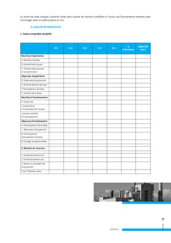 Au terme de cette analyse, l'autorité locale peut évaluer de manière simplifiée si l'accès aux financements externes peut s'envisager dans un cadre propice ou non. III. ANALYSE RETROSPECTIVE 1. Cadre comptable simplifié
