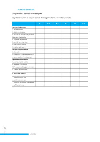 VII. ANALYSE PROSPECTIVE 1. Projection dans le cadre comptable simplifié Intégration du scénario de base, des résultats de la programmation et de la stratégie financière.