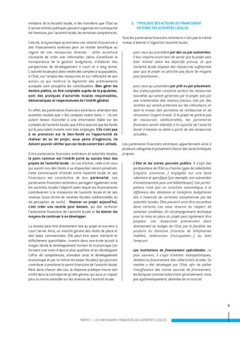 PARTIE 1 : LES PARTENAIRES FINANCIERS DES AUTORITÉS LOCALES