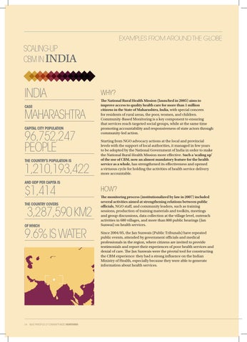 WHY? The National Rural Health Mission (launched in 2005) aims to improve access to quality health care for more than 1 million citizens in the State of Maharashtra, India, with special concern for residents of rural areas, the poor, women, and children. Community-Based Monitoring is a key component to ensuring that services reach targeted social groups, while at the same time promoting accountability and responsiveness of state actors through community-led action. Starting from NGO advocacy actions at the local and provincial levels with the support of local authorities, it managed in few years to be adopted by the National Government of India in order to make the National Rural Health Mission more effective. Such a ‘scaling up’ of the use of CBM, now an almost mandatory feature for the health service as a whole, has strengthened its effectiveness and opened a virtuous cycle for holding the activities of health service delivery more accountable.