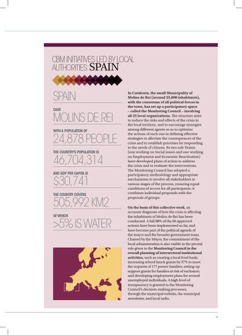 In Catalonia, the small Municipality of Molins de Rei (around 25,000 inhabitants), with the consensus of all political forces in the town, has set up a participatory space – called the Monitoring Council – involving all 25 local organizations. The structure aims to reduce the risks and effects of the crisis in the local territory, and to encourage synergies among different agents so as to optimize the actions of each one in defining effective strategies to alleviate the consequences of the crisis and to establish priorities for responding to the needs of citizens. Its two sub-Teams (one working on Social issues and one working on Employment and Economic Reactivation) have developed plans of action to address the crisis and to evaluate the interventions. The Monitoring Council has adopted a participatory methodology and appropriate mechanisms to involve all stakeholders in various stages of the process, ensuring equal conditions of access for all participants: it combines individual proposals with the proposals of groups. On the basis of this collective work, an accurate diagnosis of how the crisis is affecting the inhabitants of Molins de Rei has been conducted. A full 88% of the 66 approved actions have been implemented so far, and have become part of the political agenda of the mayor and the broader government team. Chaired by the Mayor, the commitment of the local administration is also visible in the pivotal role given to the Monitoring Council in the overall planning of intersectoral institutional activities, such as creating a local food bank; increasing school lunch grants by 57% to meet the requests of 177 poorer families; setting-up support grants for families at risk of exclusion; and developing employment plans for several unemployed individuals. A high level of transparency is granted to the Monitoring Council’s decision-making processes, through the municipal website, the municipal newsletter, and local radio.