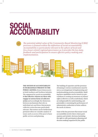 The potential added value of the Community-Based Monitoring (CBM) processes is framed within the definition of social accountability. Accountability is particularly relevant to the sphere of local and (to a lesser extent) regional governance as it provides the key data, feedback and participation to ensure effective policy making and implementation.