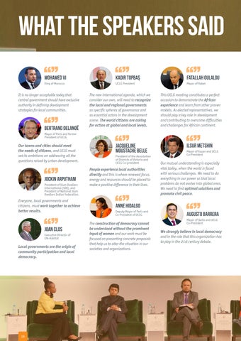 This UCLG meeting constitutes a perfect occasion to demonstrate the African experience and learn from other proven models. As elected representatives, we should play a key role in development and contributing to overcome difficulties and challenges for African continent.