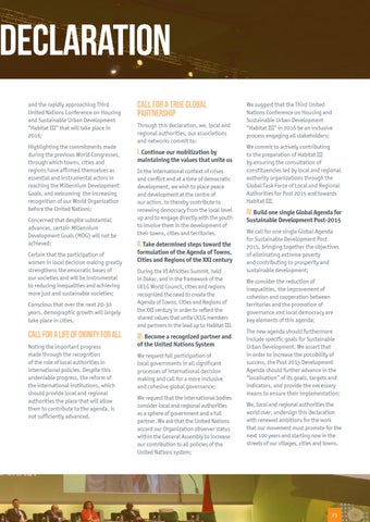 Call for a true global partnership Through this declaration, we, local and regional authorities, our associations and networks commit to: