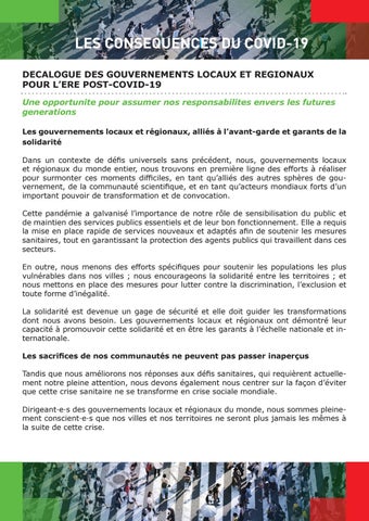 LES CONSEQUENCES DU COVID-19 DECALOGUE DES GOUVERNEMENTS LOCAUX ET REGIONAUX POUR L’ERE POST-COVID-19 Une opportunite pour assumer nos responsabilites envers les futures generations