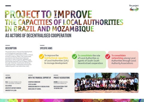 The project aims to improve the development and management capacities of eight municipalities in Mozambique and six in Brazil, and also as well as of two Local Government associations (the Mozambican National Association of Municipalities [ANAMM] and the Brazilian National Front of Mayors [FNP]), through initiatives involving the exchange of good practices, institutional training and networking with Local Authorities (LAs).