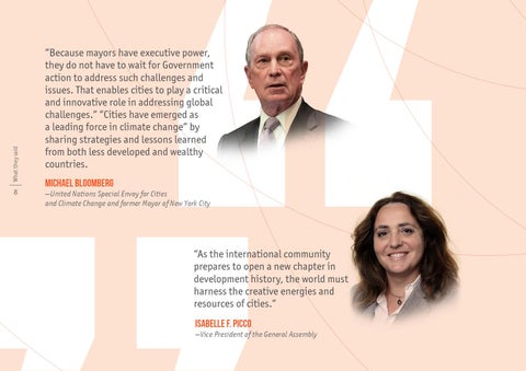 “As the international community prepares to open a new chapter in development history, the world must harness the creative energies and resources of cities.” Isabelle F. Picco —Vice President of the General Assembly