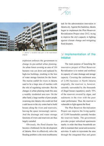 task for the administration innovation in Jakarta city. Against this backdrop, Jakarta began to implement the Pluit Reservoir Revitalization Project since 2012, trying to improve the city's capacity in fighting against climate change and mitigating flood disasters.
