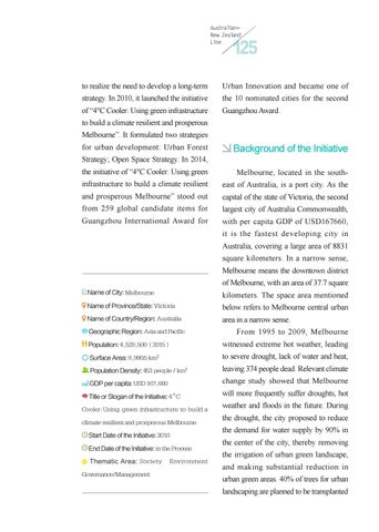 Cooler:Using green infrastructure to build a climate resilient and prosperous Melbourne Start Date of the Initiative: 2010 End Date of the Initiative: in the Process Thematic Area: Society Governance/Management