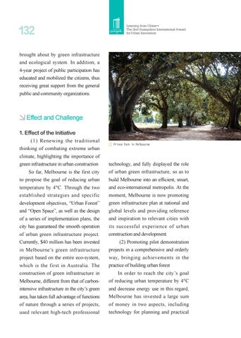 brought about by green infrastructure and ecological system. In addition, a 4-year project of public participation has educated and mobilized the citizens, thus receiving great support from the general public and community organizations.